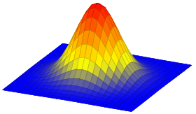 Looking at this example of a two-dimensional Gauss – where would you define the width of the LiDAR signal? The nature of the Gauss distribution makes this very difficult. The simplest way of defining the width of a beam is to choose two diametrically opposite points on this surface. This could geometrically be described as cutting this peak with a surface parallel to the 0-level. This results in a circle of which the diameter can be determined.